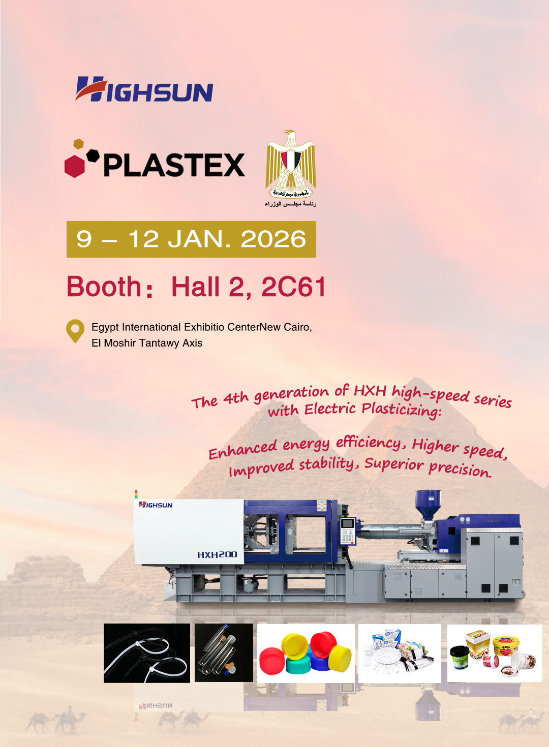 | 9 -12 STYCZNIA 2026 Odliczanie do egipskiej wystawy tworzyw sztucznych! HIGHSUN hucznie uczestniczy w prezentacji flagowych urządzeń do formowania wtryskowego, omawiając współpracę z klientami z Afryki Północnej w celu wzajemnego rozwoju! |
